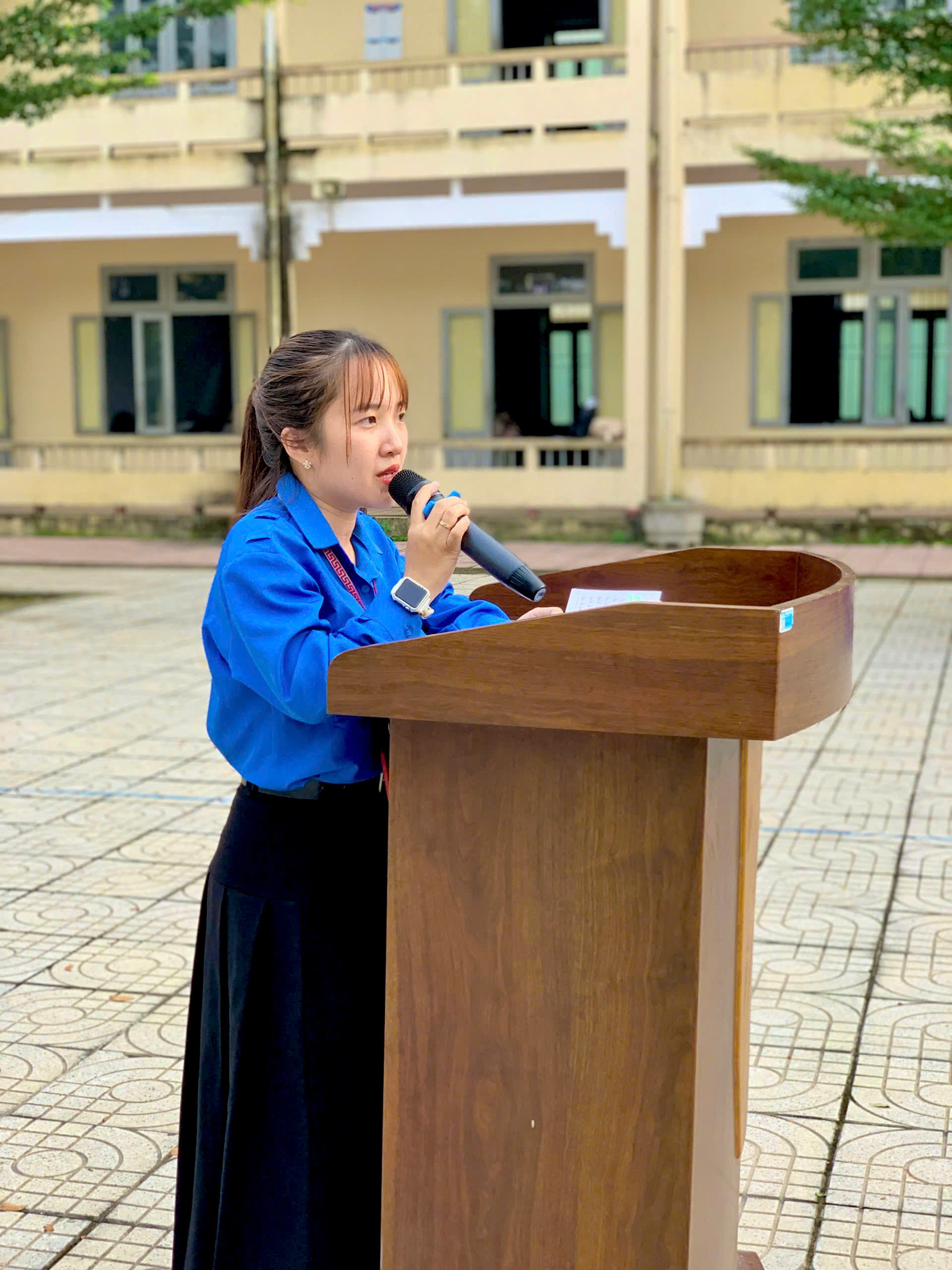 Cô Lê Thị Kim Thuỳ – Giáo viên phụ trách Tư vấn tâm lý thực hiện tuyên truyền, giáo dục cho học sinh.