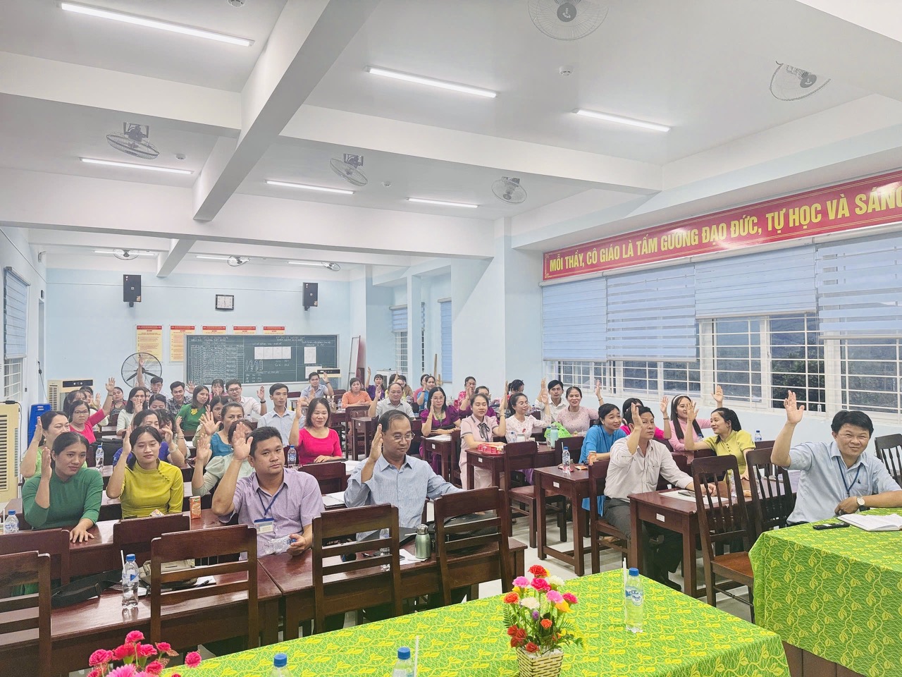 Hội nghị đã đánh giá cao, ghi nhận những kết quả đạt được trong năm học qua, đồng thời đã nghiêm túc kiểm điểm những hạn chế trong việc thực hiện nhiệm vụ năm học 2024-2025, báo cáo tổng kết được 100% đại biểu nhất trí thông qua.